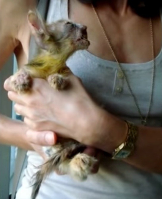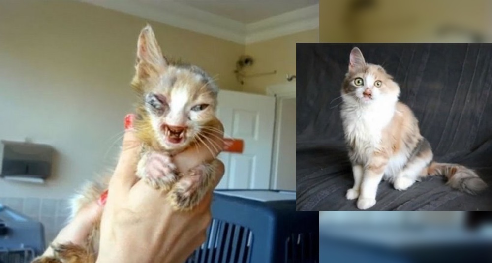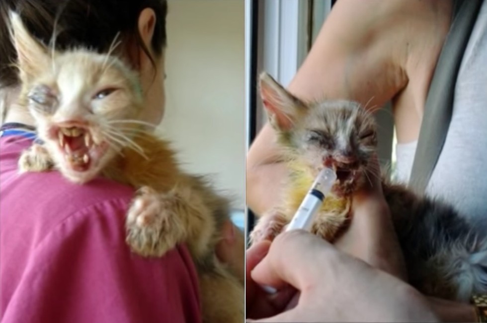 The kitten’s facial deformity was a result of severe infections.