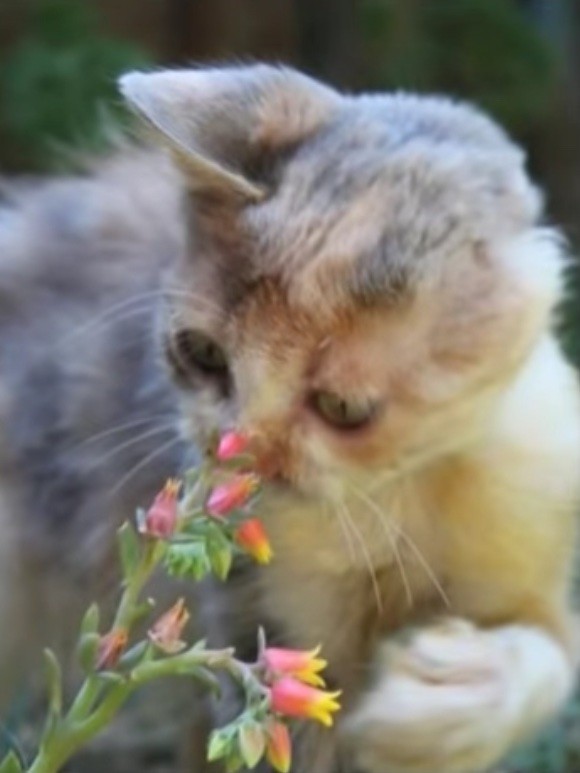 She doesn’t have an upper lip and left ear, but the little kitten absolutely loves life.