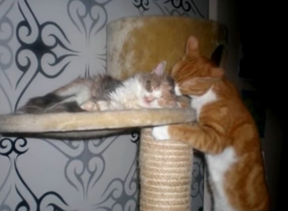 The kitty and her rescuer are completely inseparable.
