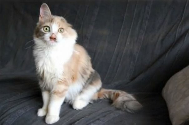The little calico was found on the streets of Istanbul, living between garbage cans. Most people passed her by because of her face until a 7-year-old girl, who heard the kitten’s cries, decided to stop and help.