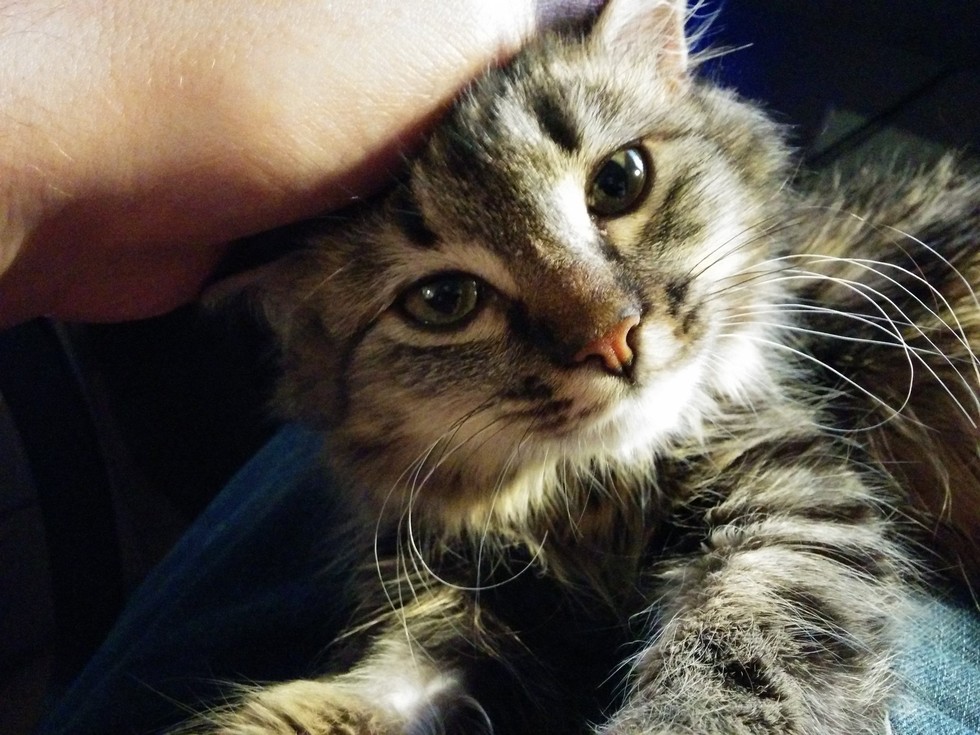 Her life was changed forever. She is no longer that scaredy little kitty but a fluffy, affectionate, velcro-clingy cuddle bug.