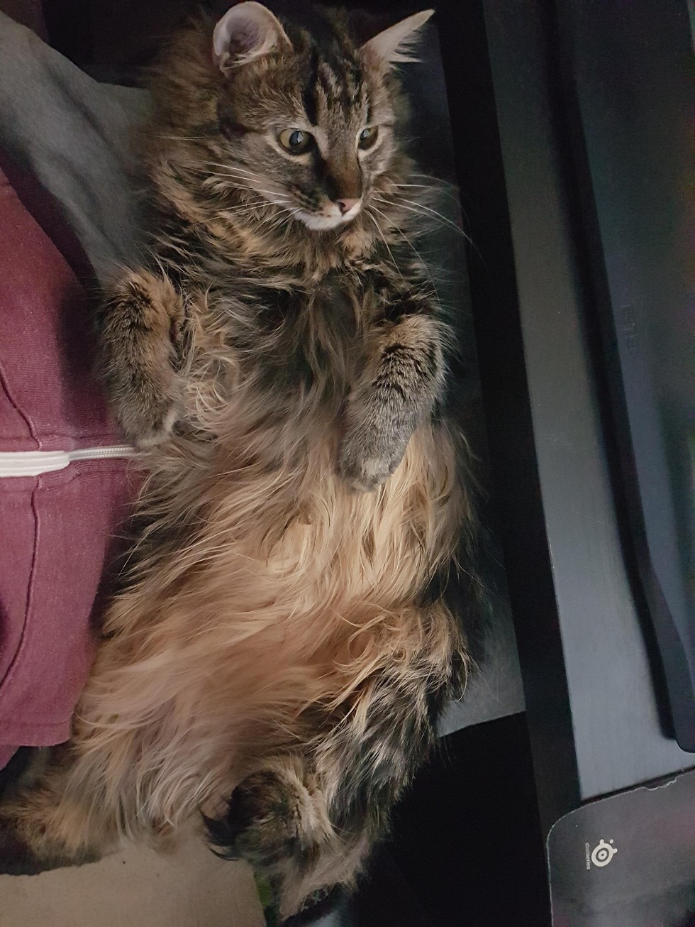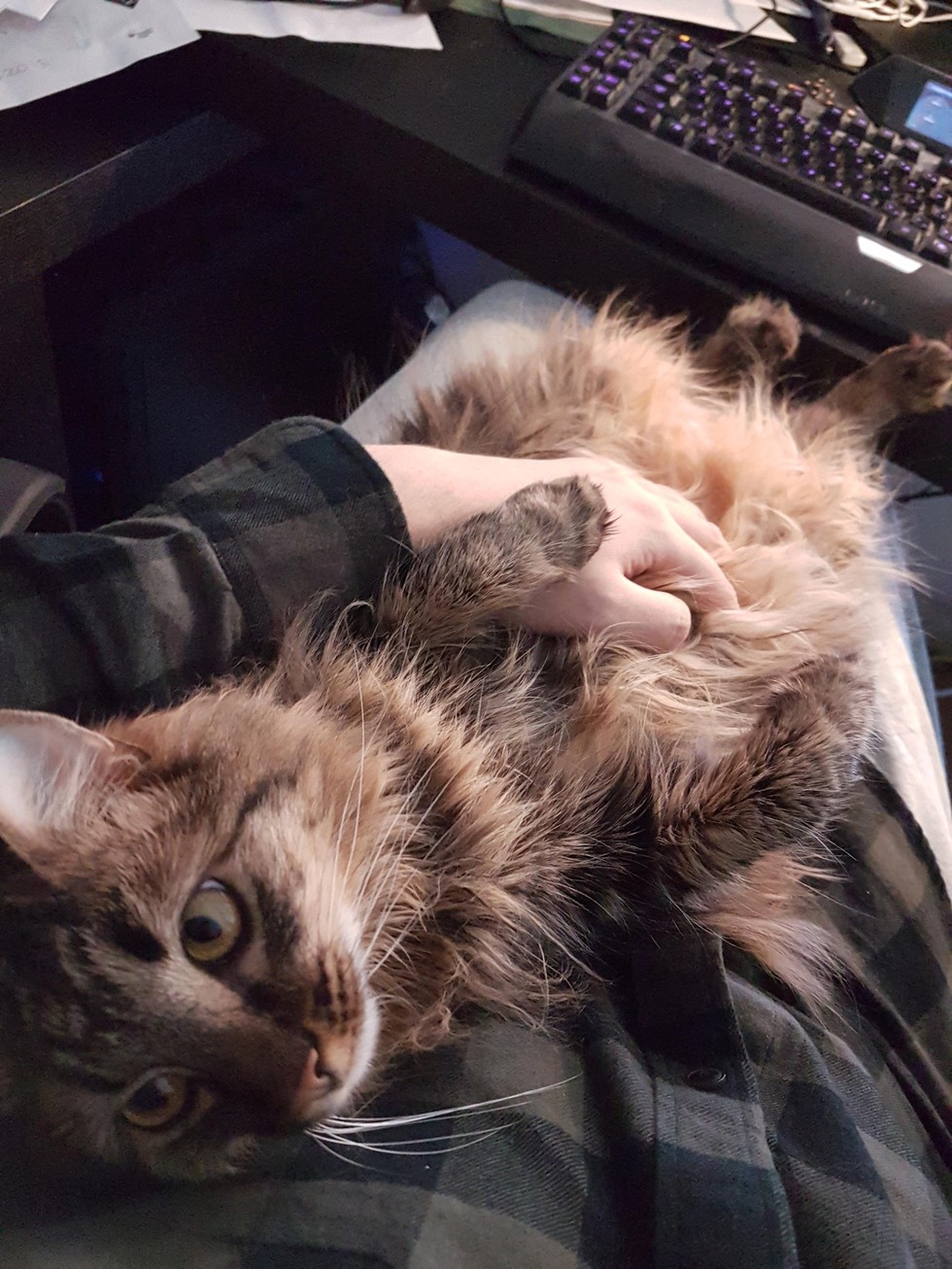 So now whenever he’s by the computer desk, Savannah settles in his lap, watching everything he does.
